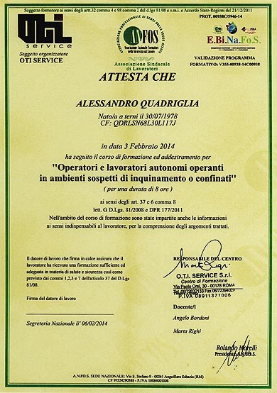 Maturata esperienza nel settore degli spazi confinati (consulenza), lavori in genere, organizzazione di cantiere su fune.